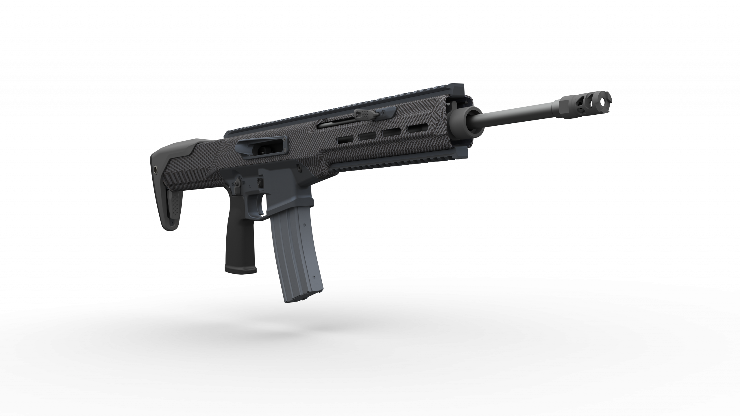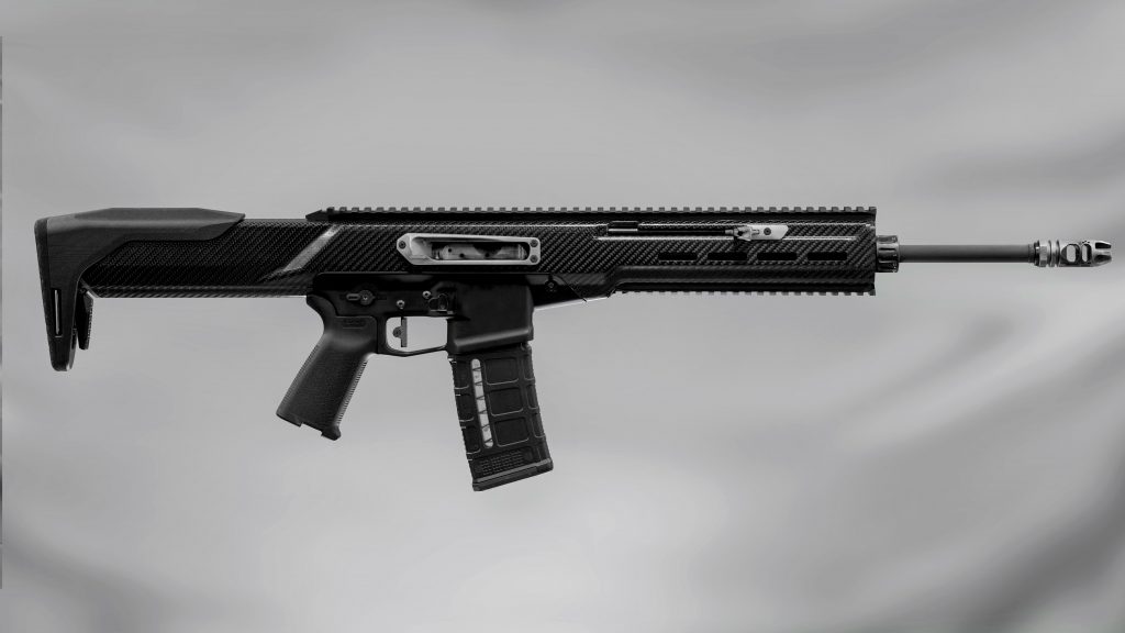 A carbon fiber and Aluminum Rifle with Monolithic Upper Receiver.