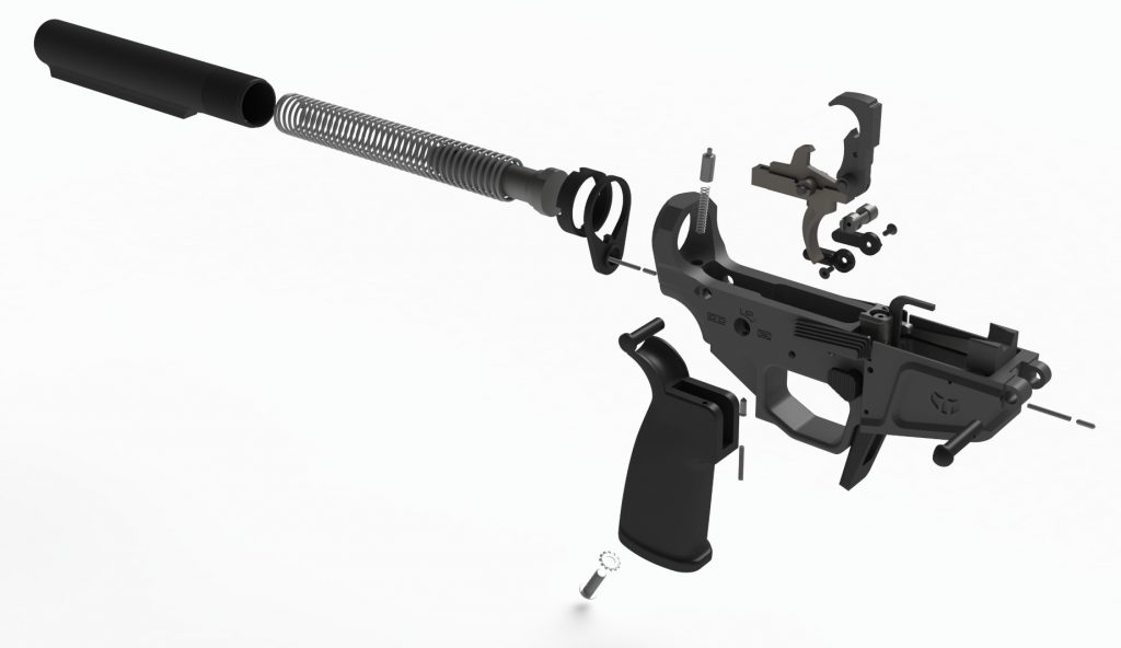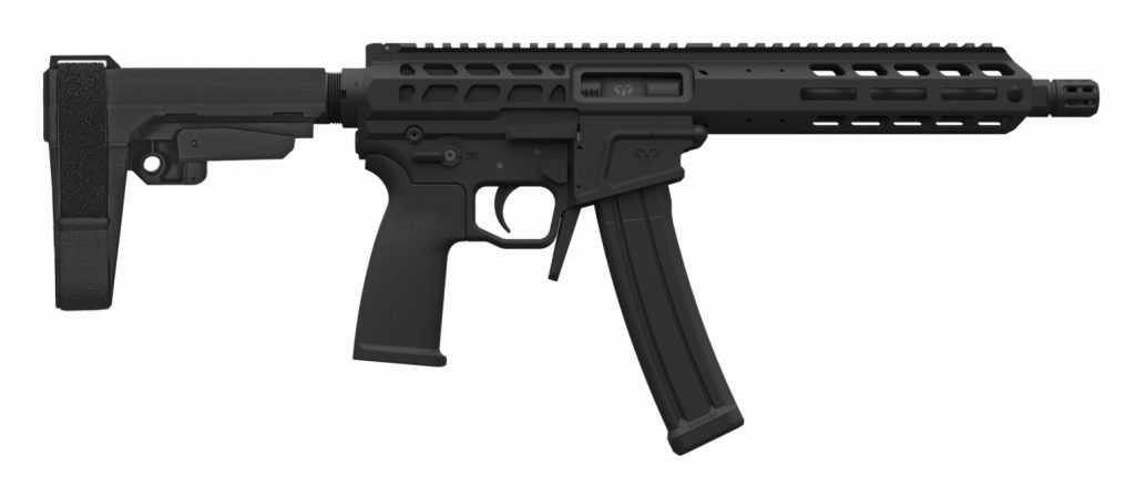The WARSCORP9 features a machined billet upper and lower receiver as well as a 6061 T-6 7″ M-LOK handguard. The WARSCORP9 is compatible with standard AR-15 barrels, trigger groups, handguards, furniture, and modified bolt carriers.