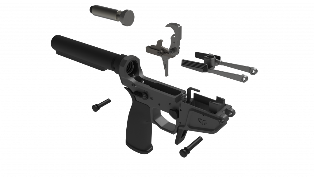 The WARSCORP9 Lower Receiver Ready To Race features a machined billet lower receiver with all the parts included in the builders kit plus the following: Schmid Single Stage Nickel Teflon Trigger, Grip, Safety (with assortment of paddles), Receiver Extension, Receiver Extension Nut, QD plate, Kynshot Buffer, Buffer Spring, Buffer Detent, and Extended takedown pins. This lower is live fire tested and ready for your brace and upper.